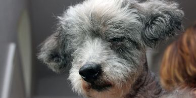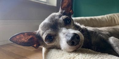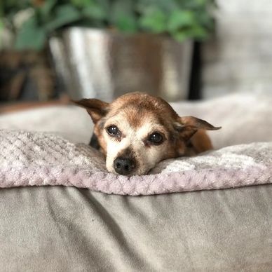 Bea suffered from horrible neglect at the hands of her owner. She remained guarded most days but we gave her all of the space she needed. She had great days where she engaged with the Pack and others where she enjoyed being alone in her bed. Bea always enjoyed being groomed - she walked taller after every appointment.